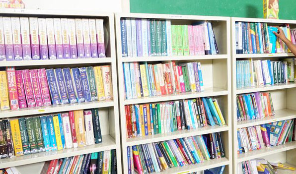 A well equipped library with books covering various fields such as general knowledge, encyclopedias, magazines etc.